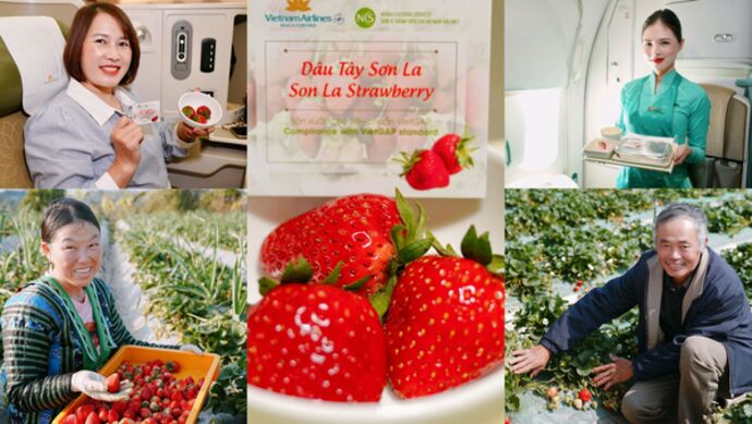 Du 16 au 22 février, Vietnam Airlines a proposé les fraises de Son La à bord de ses vols. Elles sont garanties conformes aux normes de qualité et de sécurité alimentaire VietGAP (bonnes pratiques agricoles). Les passagers peuvent déguster des plats comme le gâteau à la mousse de fraise, le yaourt à la fraise et le thé à la fraise, servis sur certains vols domestiques et internationaux à destination de l’Europe, de l’Australie, des États-Unis, de la République de Corée et du Japon.