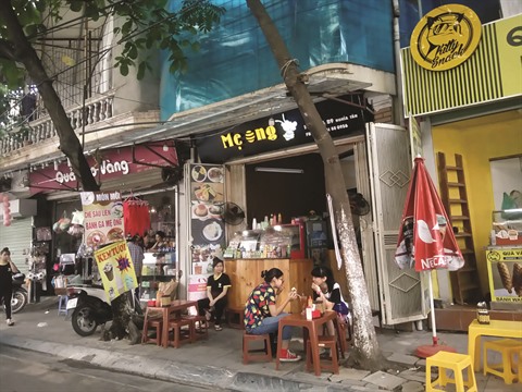 Avec toutes ces échoppes de plein air, le trottoir ressemble plus à une galerie commerçante qu’à un lieu de déambulation piétonne.