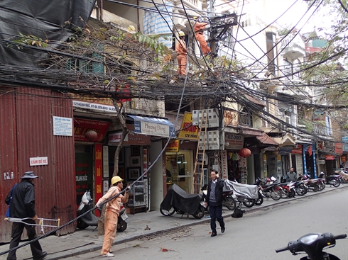 Hô Chi Minh-Ville a prévu d’enterrer progressivement ses câbles électriques et ses lignes de télécommunications dans plusieurs arrondissements d’ici 2015. Théoriquement, l’enfouissement du réseau aérien devrait être achevé en 2020 sur l’ensemble de la ville. «À Hanoi, c’est différent. Les rues du centre-ville sont beaucoup trop étroites pour que l’on puisse tout enterrer pour l’instant. Il y a déjà beaucoup trop de choses sous terre. Mais la plupart des câbles sont enterrés lorsque l’on s’éloigne un peu de la ville», explique une vendeuse sortie de sa boutique pour admirer la scène.
