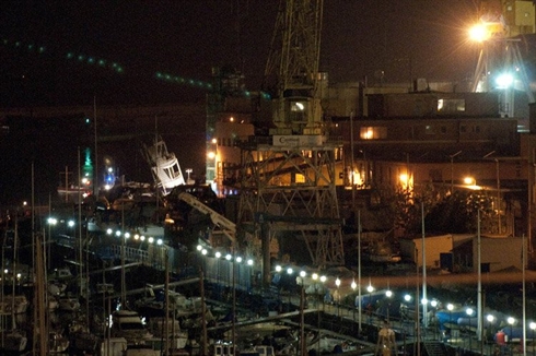 Les recherches des plongeurs, qui s'activaient dans la nuit, se concentraient sur le bassin du mole Giano, où se trouvait la tour métallique.