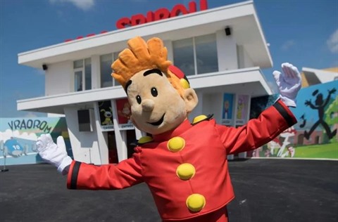 | Un figurant au nouveau parc d'attractions Spirou Provence inauguré le 1er juin à Monteux (Vaucluse). |