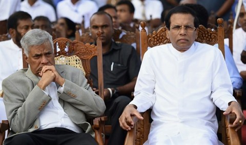 | Le président srilankais Maithripala Sirisena (gauche) et son Premier ministre Ranil Wickremesinghe durant une cérémonie publique à Colombo le 8 janvier. |