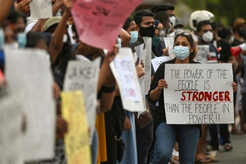 | Manifestation anti-gouvernementale à Colombo, le 2 avril. |