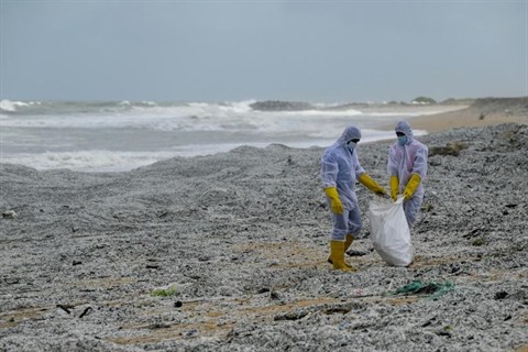 Les bulldozers et la Marine sri-lankaise ont été mobilisés pour nettoyer la plage de Negombo polluée par des tonnes de ces granulés mélangés à du pétrole brûlé et autres débris rejetés par la mer en provenance du navire.