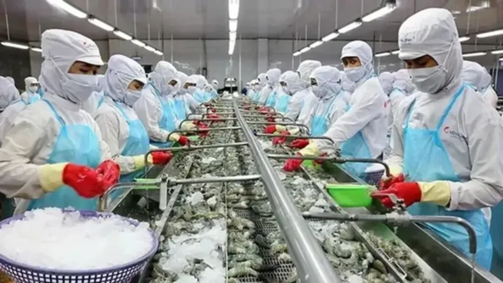 | Transformation de crevettes pour l'exportation dans l'usine du groupe Minh Phu. |