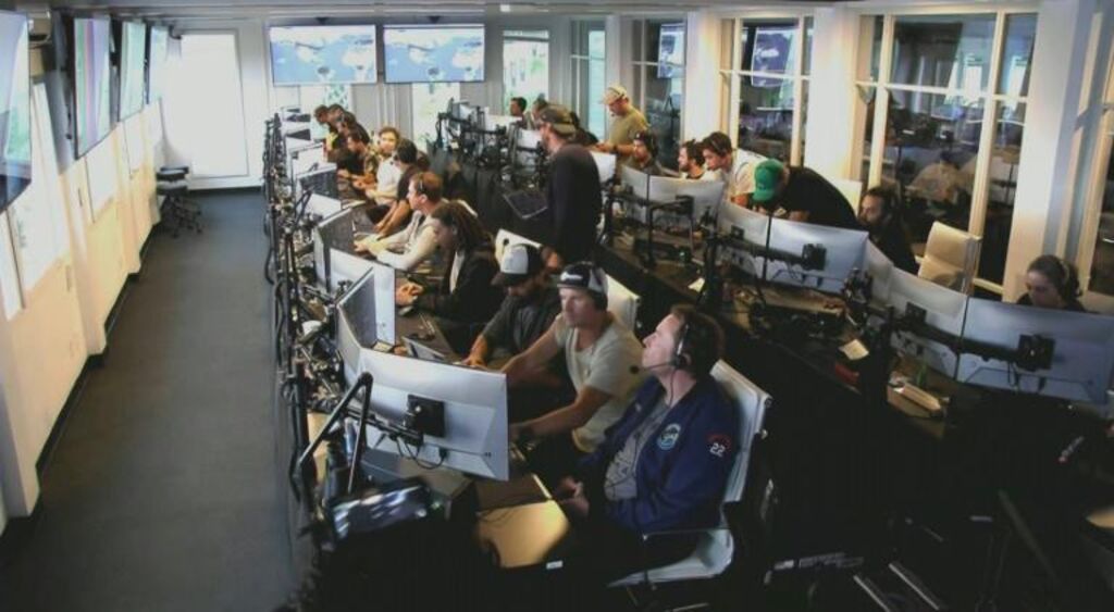 | Image tirée d'une vidéo de SpaceX montrant Elon Musk, patron de SpaceX, assistant au décollage de la fusée Starship depuis la salle de contrôle de la Starbase, le 20 avril à Boca Chica, au Texas. |