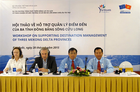 Placé sous l’égide de l’Administration nationale du tourisme et du projet EU-ESRT, le colloque «Programme de développement du tourisme responsable - EU-ESRT» (financé par l’Union européenne) visait à renforcer la coopération pour le développement du tourisme dans le delta du Mékong. L’occasion pour que les représentants du projet EU-ESRT ainsi que des spécialistes vietnamiens et étrangers d’annoncer les résultats de leurs travaux réalisés entre le 12 et le 27 janvier 2015 dans trois villes et provinces : An Giang, Kiên Giang et Cân Tho. Ces travaux avaient pour but de soutenir le lancement de produits touristiques et de plans promotionnels pour cette région.