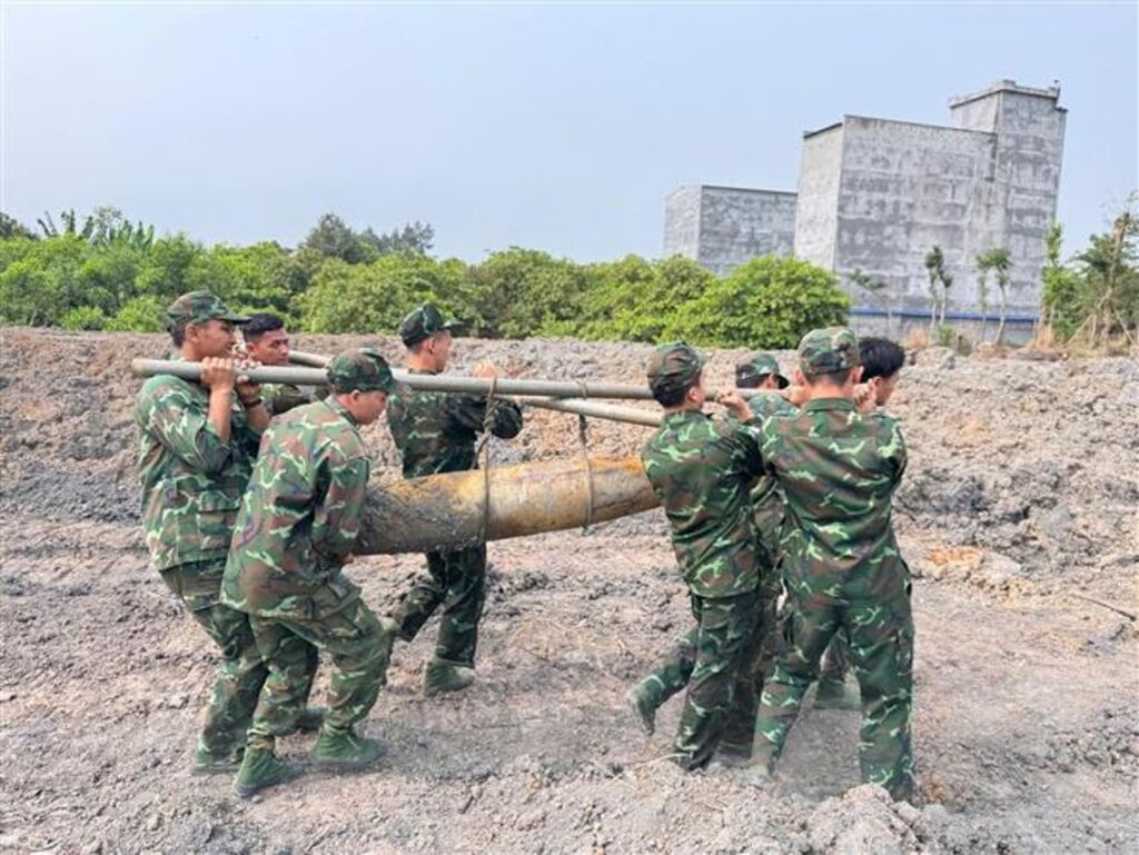 | Une bombe détectée le 25 mars à Binh Phuoc (Sud). |