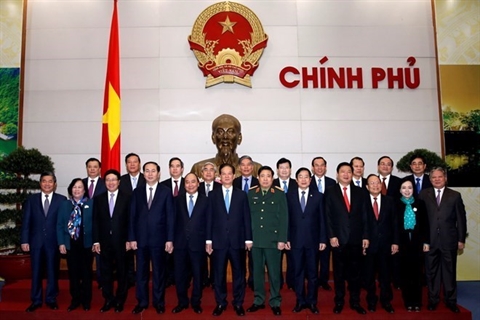 | L'ancien Premier ministre Nguyên Tân Dung (1er plan, 6e à gauche) et d'autres membres du gouvernement du mandat 2011-2016. |