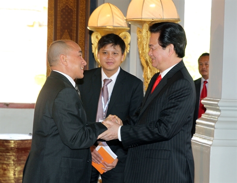 | Rencontre entre le Premier ministre Nguyên Tân Dung (droite) et le roi du Cambodge, Norodom Sihamoni, le 14 janvier à Phnom Penh. |