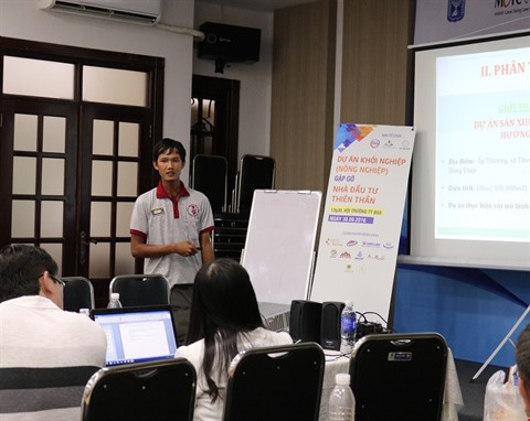 | Vo Van Tiêng présente son projet lors du concours «Projet de startup» |