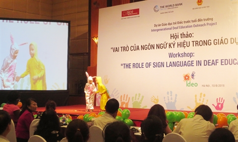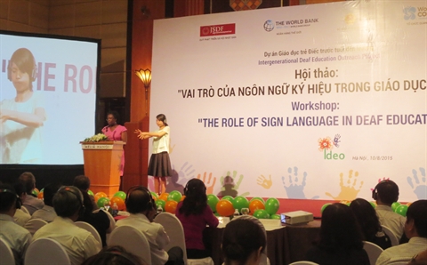 | Colloque intitulé «Rôle du langage des signes dans l’enseignement pour les enfants sourds», le 10 août à Hanoi. |