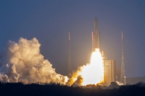 | Une fusée Ariane V lors de son lancement à Kourou en Guyane, le 16 janvier. |