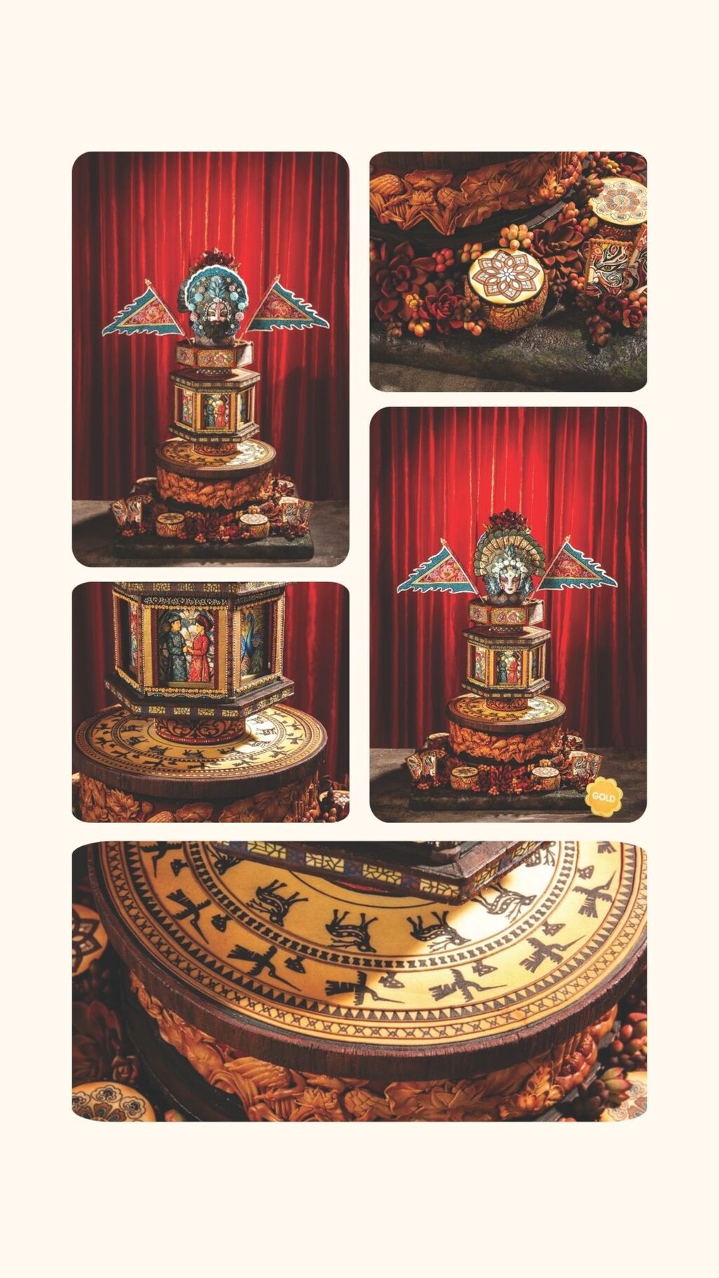 Le premier étage s’inspire du tambour de hát bôi, ce tambour emblématique associé au théâtre traditionnel vietnamien. Recouvert d’un rouge éclatant, il est orné de fleurs de Graptosedum California Sunset, symbole d’un amour discret mais tenace. Cette base représente le commencement, l’écho du tambour qui ouvre une nouvelle vie. Le deuxième étage, conçu en forme d’hexagone, incarne le lien entre passé et présent, entre tradition et modernité. Un détail artistique fort, qui reflète une réflexion profonde sur le mariage : non seulement une union affective, mais aussi un passage de relais entre générations, entre deux époques appelées à coexister sous un même toit. Au sommet, l’émotion atteint son paroxysme avec la représentation du couple de mariés métamorphosés en personnages de hát bôi. La mariée affiche un visage fin et déterminé ; le marié, l’allure noble d’un général. Dans les pièces de théâtre, ils sont adversaires, sur deux fronts opposés. Mais dans la réalité, ils sont âmes sœurs et compagnons de vie, prêts à transcender les différences pour atteindre le bonheur. La fusion entre narration traditionnelle et esthétique contemporaine, entre imaginaire populaire et codes du gâteau de mariage moderne, confère à “Hy su hát bôi” une force singulière : audacieuse, délicate, profondément vietnamienne, elle s’impose comme une œuvre d’art sur la scène culinaire asiatique.