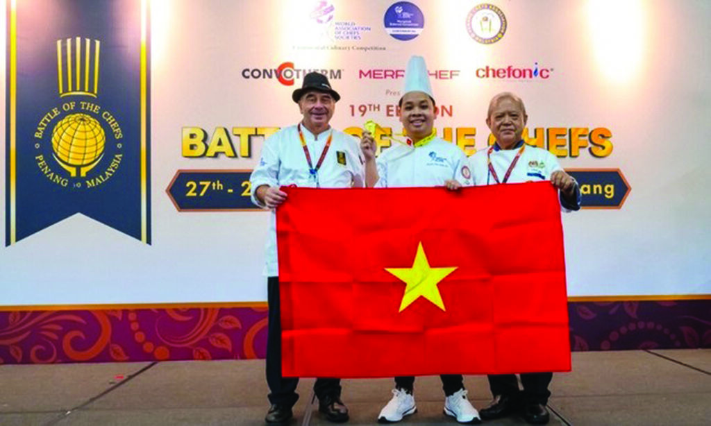 | Nguyên Huu Thiên Ân (centre) reçoit un prix au concours “Battle of the Chefs 2024”. |