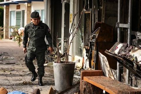 | Un policier sur les lieux d'une explosion du 3 novembre dans la province de Pattani, en Thaïlande. |