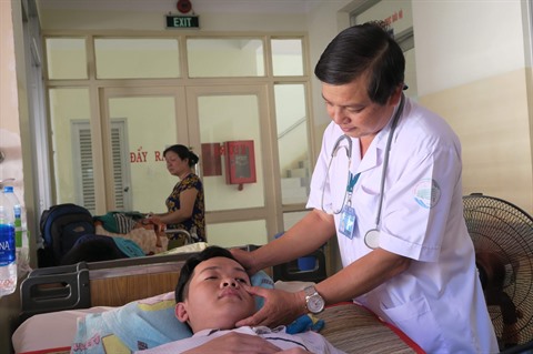 | Le médecin Nguyên Thanh Phong soigne un jeune souffrant de la dengue. |