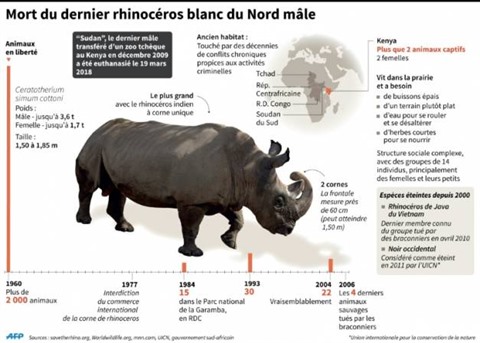 Quand Sudan est né en 1973 dans le Parc national de Shambe au Soudan du Sud, il y avait encore 700 rhinocéros blancs du Nord sur la planète. À sa mort, il ne reste plus que deux femelles en vie, toutes deux incapables de se reproduire. Sudan, reconnaissable à son imposante stature et sa corne arrondie, était un vieillard au regard de l'espérance de vie des rhinocéros. Ces derniers mois, son état de santé s'était dégradé.