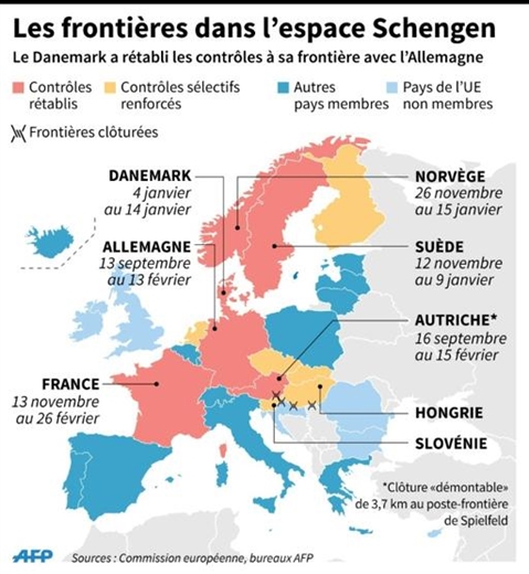 Les traités européens permettent le rétablissement des contrôles aux frontières en cas exceptionnel, même si cela affaiblit considérablement les accords de Schengen entrés en vigueur en 1995.