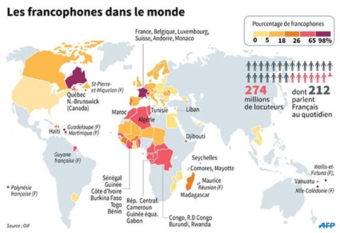 | L'ONU estime que 274 millions de personnes parlent français à travers le monde en 2017 |