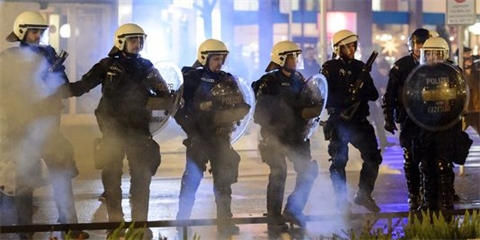 | Des policiers anti-émeute à Bâle, lors d'un rassemblement à l'occasion d'une rencontre ministérielle de l'Organisation pour la sécurité et la coopération en Europe (OSCE) le 5 décembre. |
