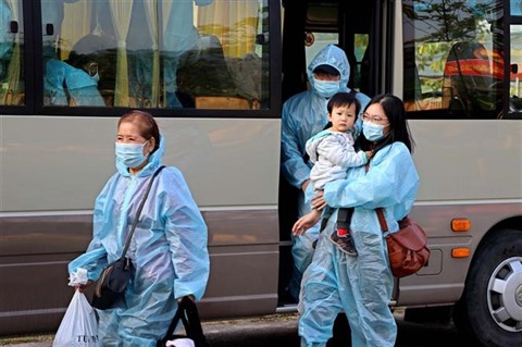 | Des citoyens vietnamiens rapatriés de France arrivent à une zone de quarantaine à Hoà Binh (Nord). |