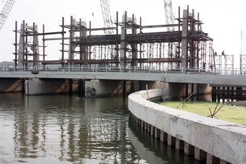 | Dans la province de Kiên Giang, les travaux de construction d’un barrage visant à empêcher l’eau salée de pénétrer en amont s’accélèrent. |