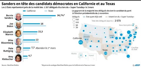 La course à l'investiture dans le camp démocrate, qui est désormais une bataille entre septuagénaires, pourrait en revanche se compliquer pour le milliardaire Michael Bloomberg qui a fait l'impasse sur les scrutins des quatre premiers États.