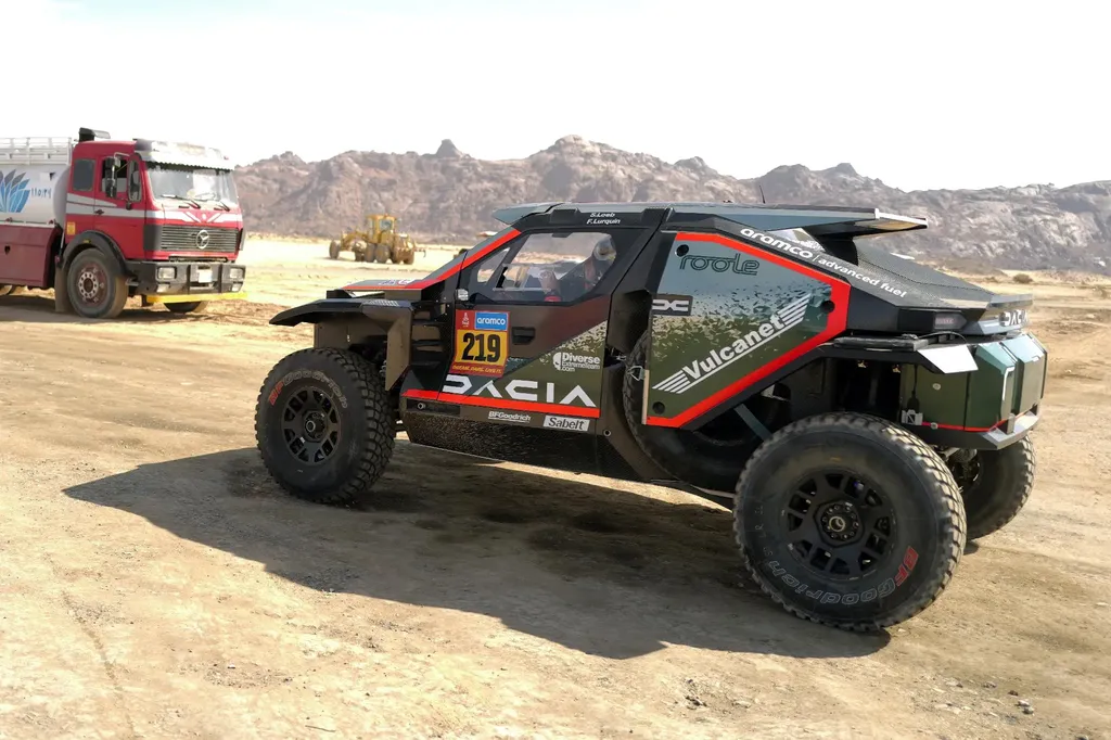 | Le Dacia du Français Sébastien Loeb, le 1er janvier 2025 à Bisha, en Arabie saoudite, avant le départ du Dakar. |