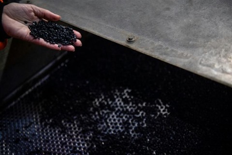 | Produit final du recyclage des plastiques agricoles dans l'usine Suez à Orée-d'Anjou, le 26 mars |