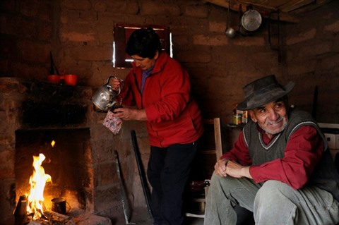 | Antonio Sazo et son épouse, tous deux éleveurs de chèvres se reposent dans leur cabane à El Alambrado, dans la province de Mendoza, le 20 octobre. |