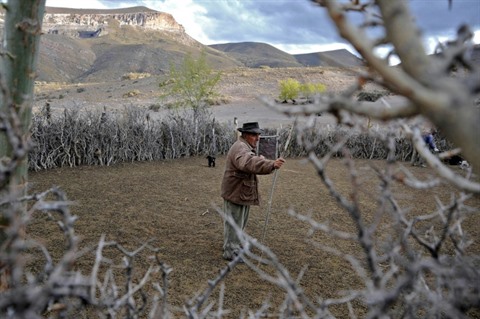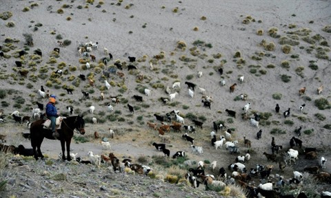 | Antonio Sazo éleveur de chèvres regroupe son troupeau à El Alambrado, dans la province de Mendoza, le 20 octobre. |