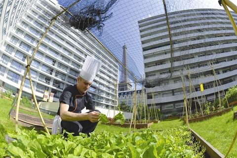 | De plus en plus de chefs ont un potager sur le toit de leur restaurant. |