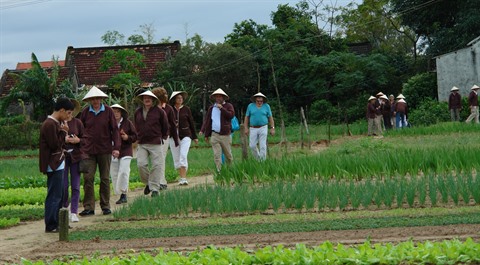 | Des touristes étrangers en visite du village de Trà Quê, à Hôi An (Centre). |