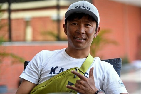 | Lakpa Sherpa, lors d'une interview avec l'AFP, le 2 juin à Katmandou, au Népal. |