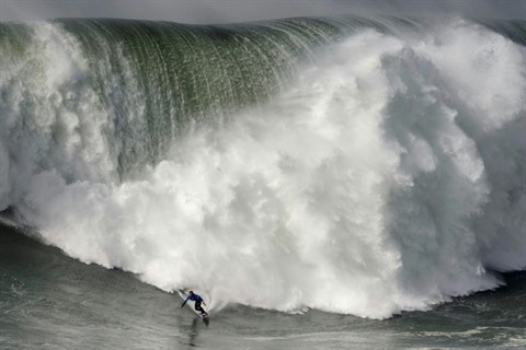 | Le surfeur américain Kai Lenny à Nazaré, au Portugal, le 11 février. |