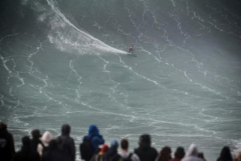 Chianca a vécu une journée quasi parfaite à Nazaré, où les vagues déferlent à un rythme hallucinant d'octobre à mars, grâce à une faille de 5 km de profondeur.