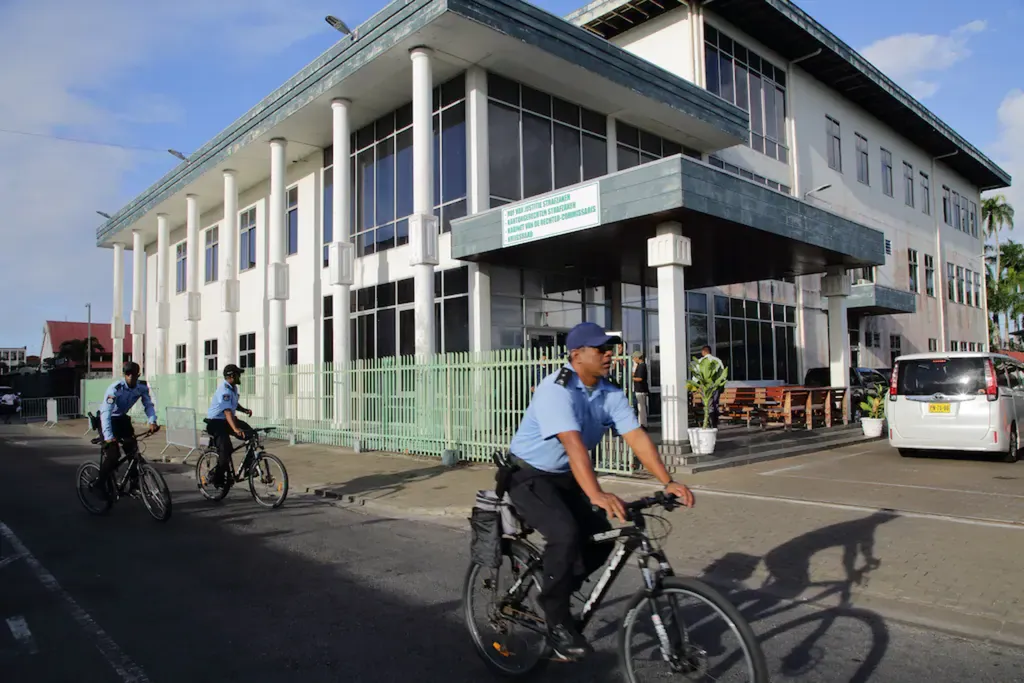 | Des policiers à Paramaribo, la capitale du Suriname, le 23 janvier 2024. |
