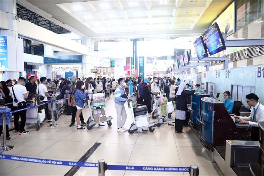| À l'aéroport international de Nôi Bài à Hanoï. |