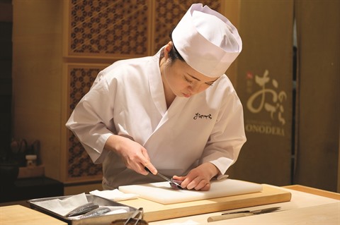Chez Onodera, elle n’est pas totalement seule : il y avait avec elle une jeune fille parmi les dix apprentis avant la fermeture temporaire du restaurant en avril en raison de la pandémie de coronavirus. Mais la dizaine de cuisiniers du restaurant sont tous des hommes.
