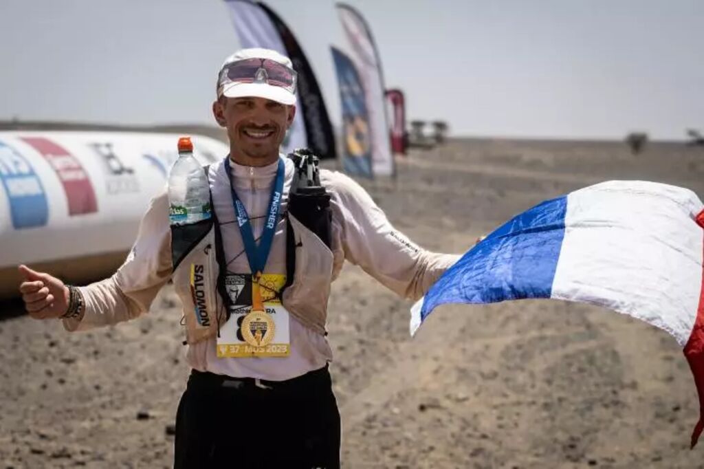 | Le Français Mathieu Blanchard, lors de la 37e édition du Marathon des sables, le 28 avril au Maroc. |