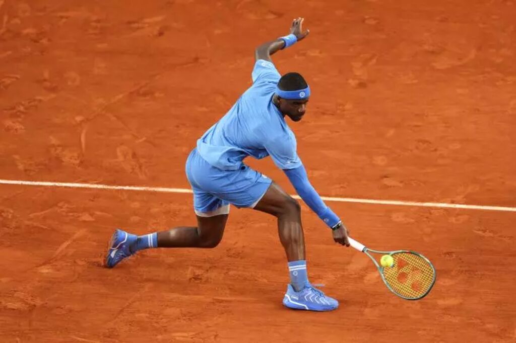 | L'Américain Frances Tiafoe en huitièmes de finale de Roland-Garros contre l'Allemand Daniel Altmaier le 1er juin à Paris. |