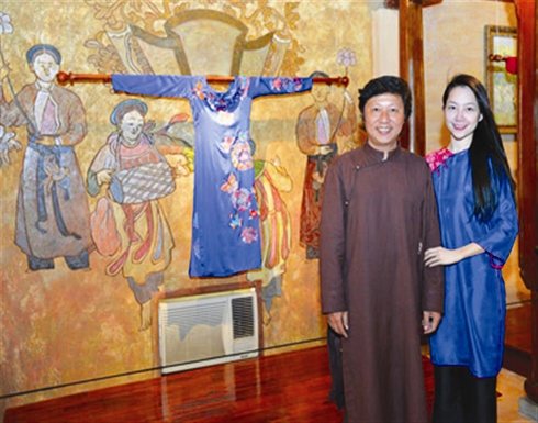 Diplômé de l’Université des beaux-arts, Sy Hoàng, 52 ans, travaille depuis une trentaine d’années dans le stylisme, et figure parmi les inconditionnels de l’ao dài. «Loin d’être formé en stylisme, j’ai choisi ce métier du fait de l’ao dài», avoue-t-il. «Cette tunique féminine est une superbe création qui laisse transparaître la quintessence de la culture vietnamienne. Mon seul souhait est de l’embellir». Son principe de création est d’introduire la peinture dans la tenue traditionnelle, et de chercher les idées puisées dans le folklore national. En effet, agrémentés de dessins originaux, les ao dài de Sy Hoàng apparaissent plus raffinés, plus charmants encore.