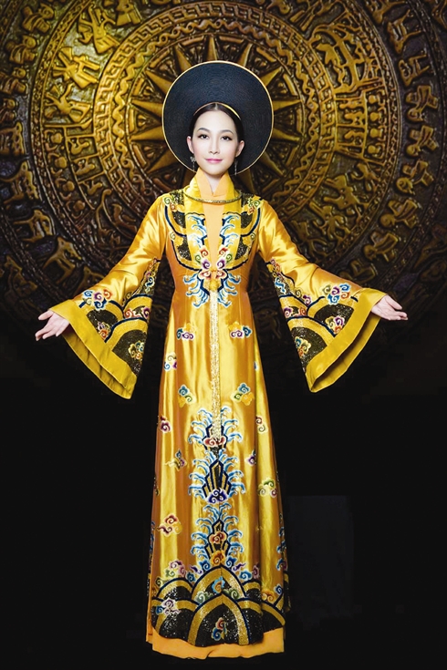 | La danseuse Linh Nga en tenue ao dài conçue par Sy Hoàng. |