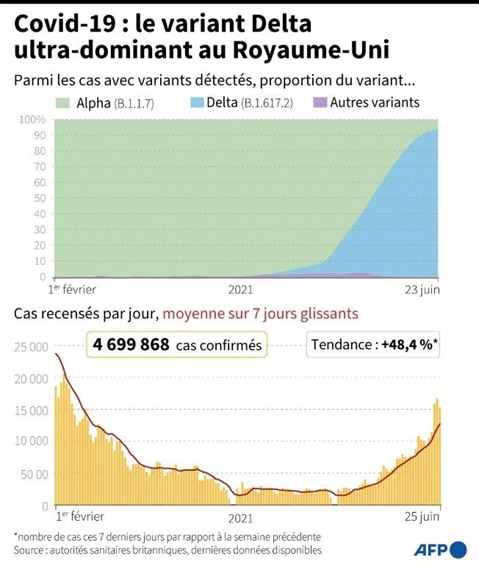| Le variant Delta ultra-dominant au Royaume-Uni. |