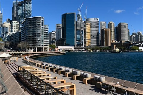 | Le front de mer de Sydney déserté après l'annonce du renconfinement de la ville, confrontée à une reprise de la pandémie, le 26 juin. |