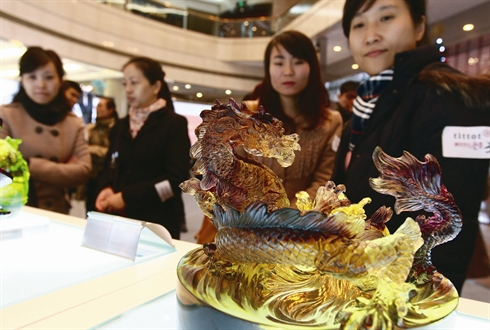 | Un dragon chinois en verre dans un magasin de Shanghai (Est de la Chine). |