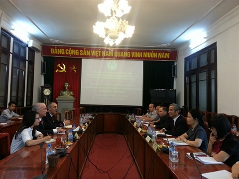 | Entretien entre représentants de la Confédération générale du travail du Vietnam et de la Confédération générale des travailleurs portugais, le 6 juillet à Hanoi. |