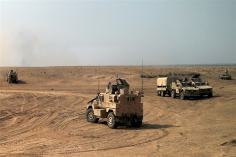 | Des combattants kurdes et arabes syriens engagés dans une offensive contre l'EI dans l'Est de la Syrie, le 13 septembre 2018, avec l'appui de la coalition internationale anti EI menée par Washington. |