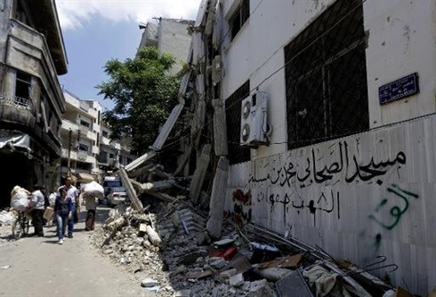 | Les rues dévastées de Homs le 12 mai. |